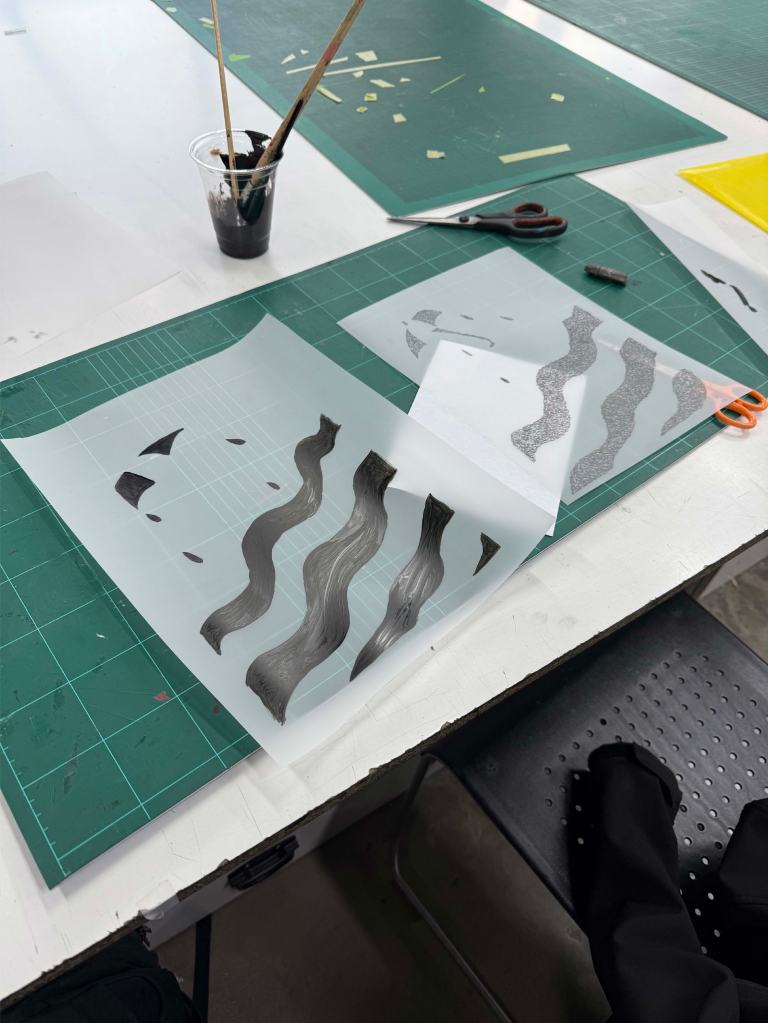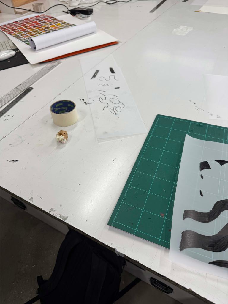 I decided to chose screen printing as my medium this week. And had planned on shooting a video with a friend but the coldness made me empathaise with who frozen she would become in the outfits we’d planned. We canceled.