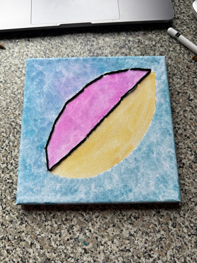 I want to create a 90 x 120 piece inspired by this style but first I’m going to experiment with the sewing border on small canvas and look at different ways I can interpret and play around with it.