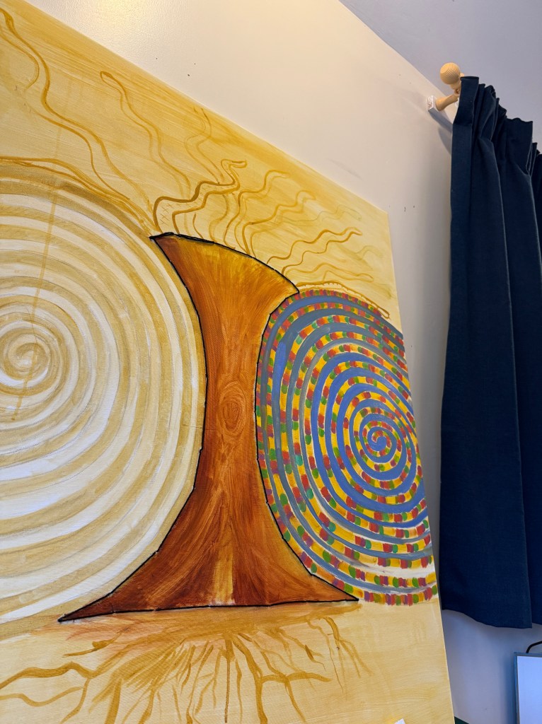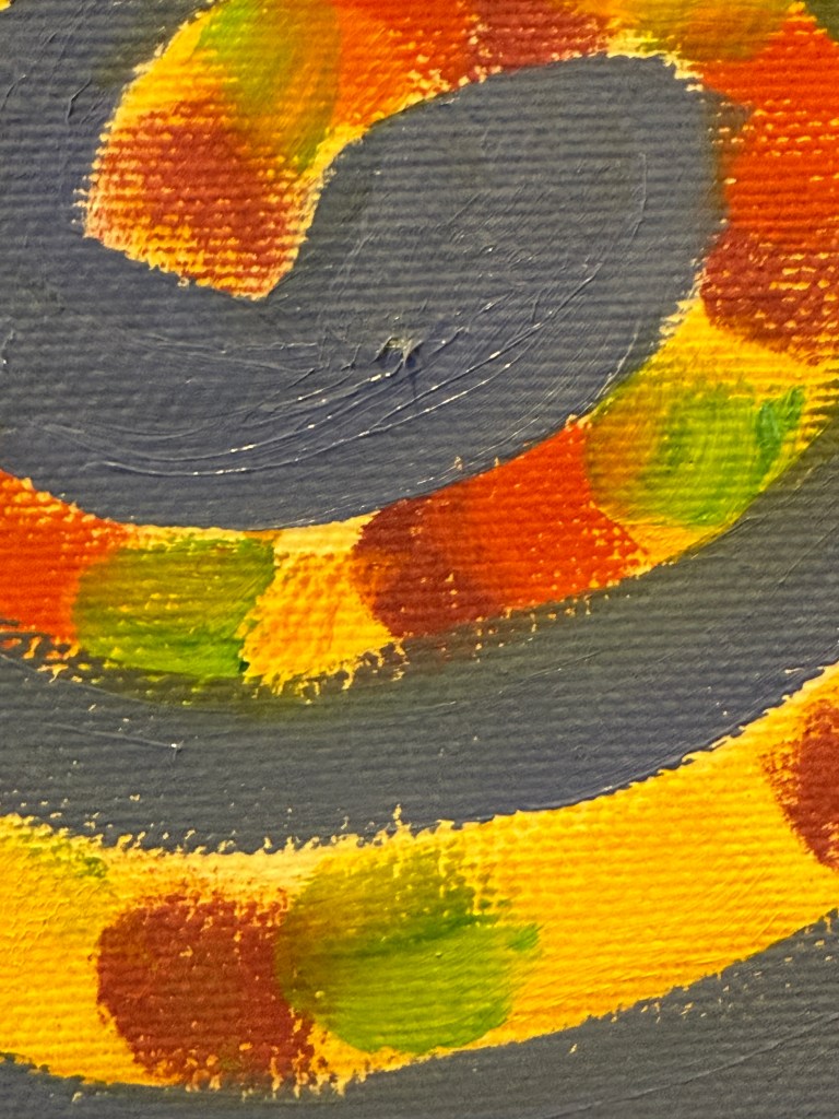 I plan to paint the blue in the clockwise spiral and then add some BRIGHT PINK to the swirl. I want more un natural colours involved. Brighter more flamboyant colours.