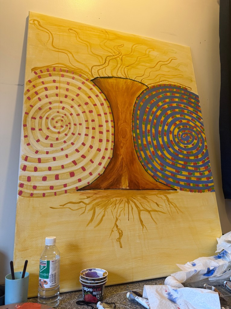 I drew a rough outline on procreate of how I want the snakes to sit on top of the trunk and then projected it over the painting.