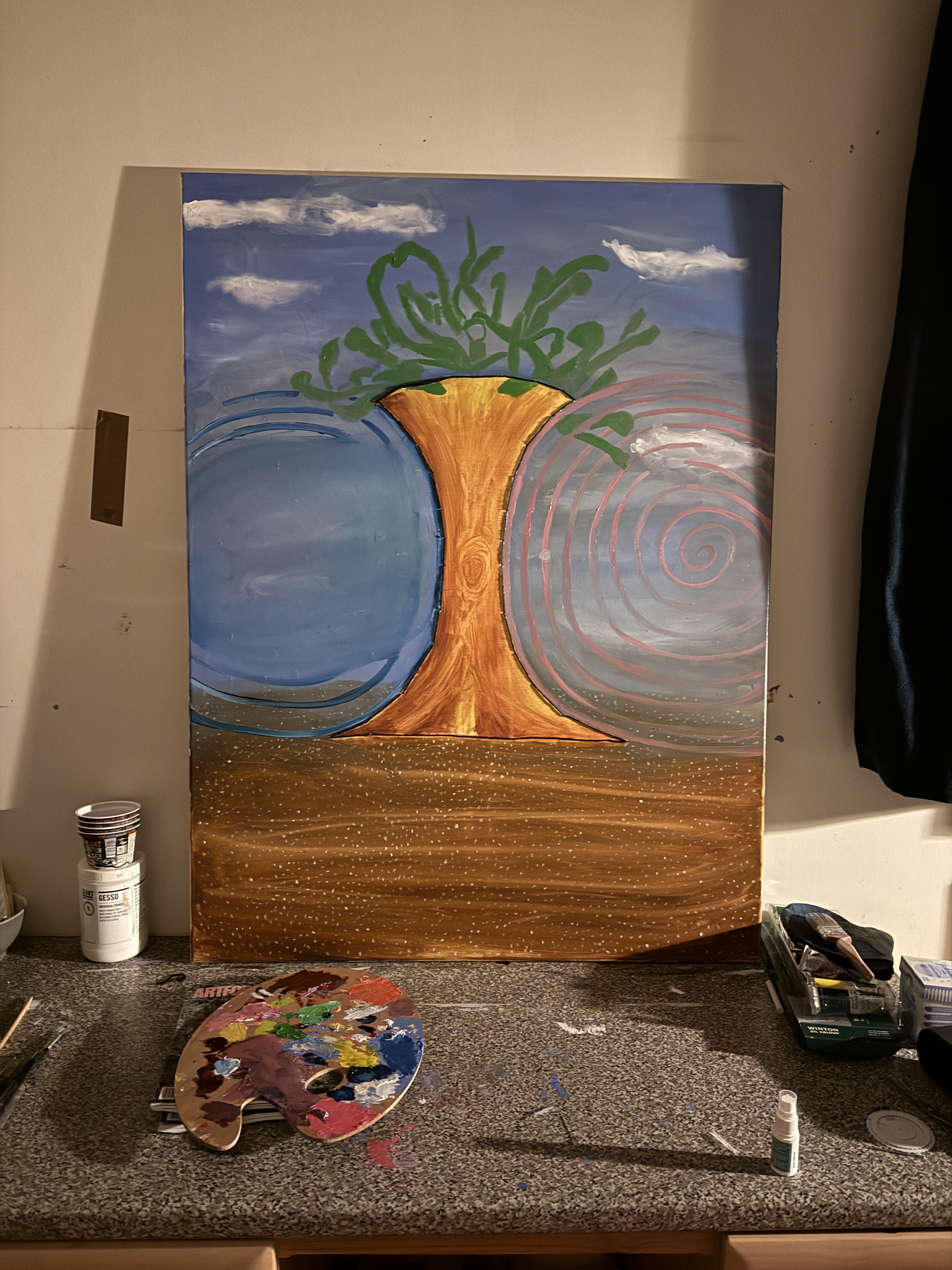 INPUT: Songs I’m listening to today: TIGERS BLOOD- WAXAHATCHEE OUTPUT: CURRENT PIECE Piece One: Oil on 120×90 canvas I’ve reworked the spirals, background and general feel of the piece. Mostly through intuition and my current need for destruction whilst in my luteal phase. As ever, destruction has proven to be the foundation for even more … Continue reading twenty first day of feb, 2 thousand and 25- PATH OF DESTRUCTION/ rebirth