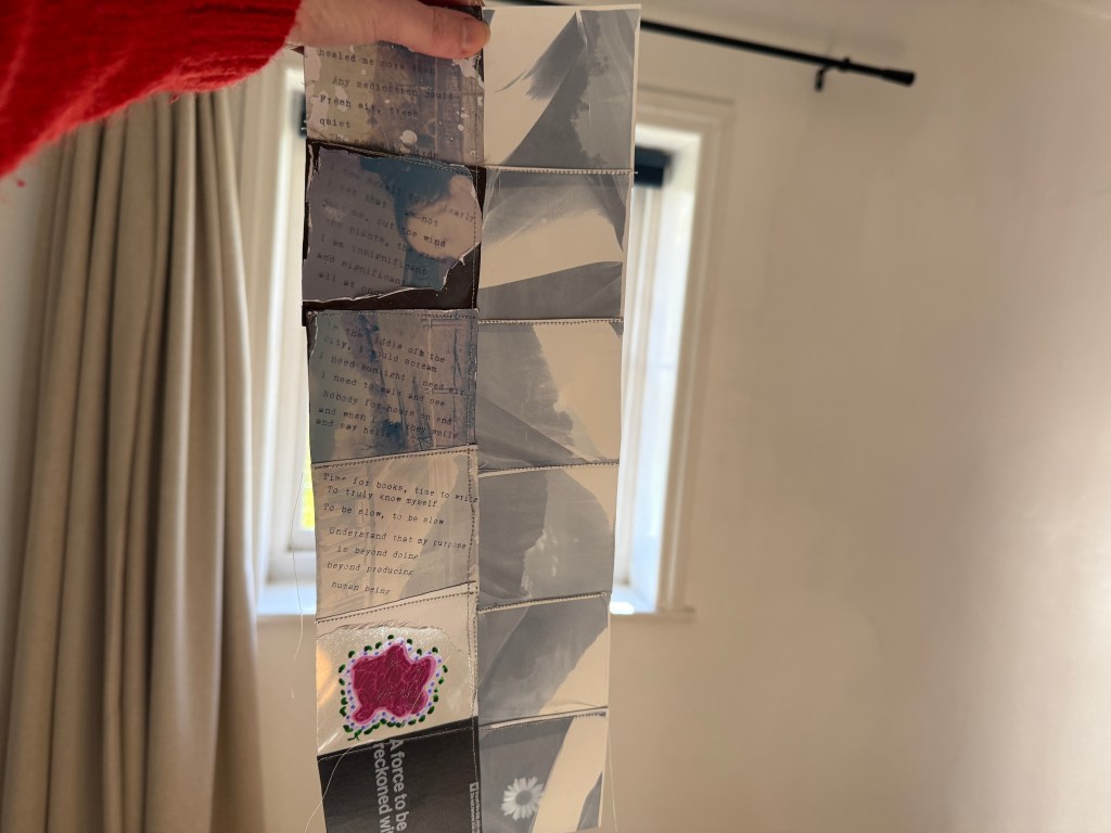 By destroying and peeling apart polaroids of myself and my environment, I’m creating a textile that I’m then going to attach to a light source. It’ll have two states, one where you can’t see the images, they create this beautiful wave like patterns, and then one where the light exposes the image underneath.