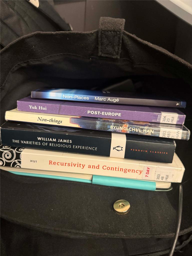 In place of them I took out ‘Post Europe’ and ‘Recursivity and Contingency’ by Yuk Hui and ‘Non- Things’ by Byung Chul Han which goes more into depth about how alot of the ‘things’ we are interacting with now are not actually there. For instance communication thorough digital spaces without community. No physical tracking of memories etc.
