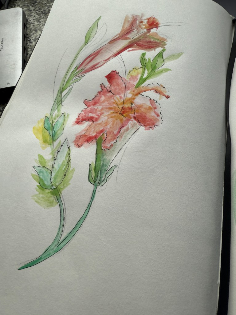 And along with practicing lines and shapes I started playing with watercolour. These are work in progress and I’ll probably finish them later today