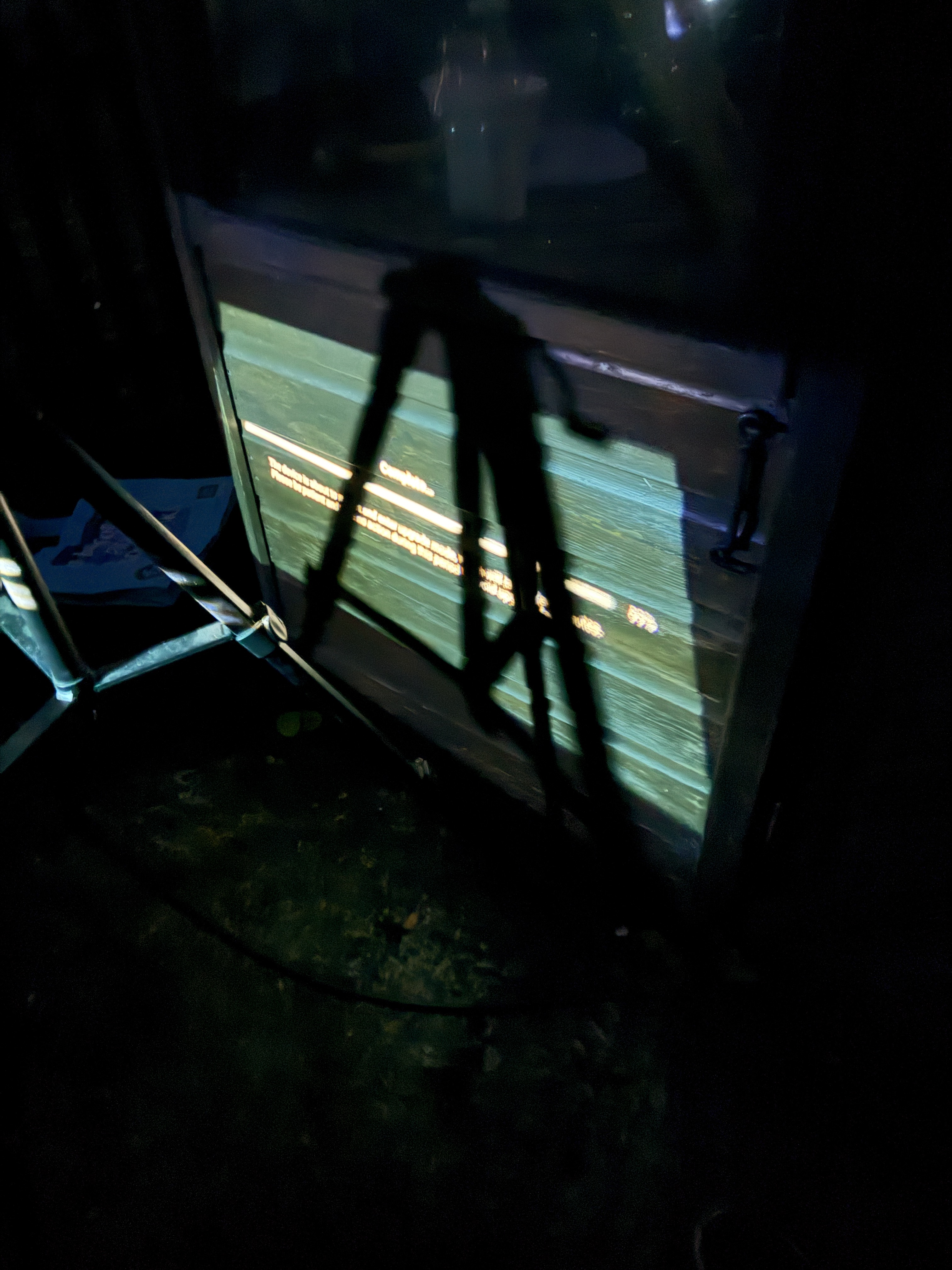 On Saturday evening I managed to go out and get footage for first experiments for ‘Take your fear outside’. It took two goes to get the footage I wanted, due to the technical elements of getting electricity safely outside on a misty/slightly rainy day and also getting the projector to project the doomscroll image. By … Continue reading Take your fear outside- First experiments