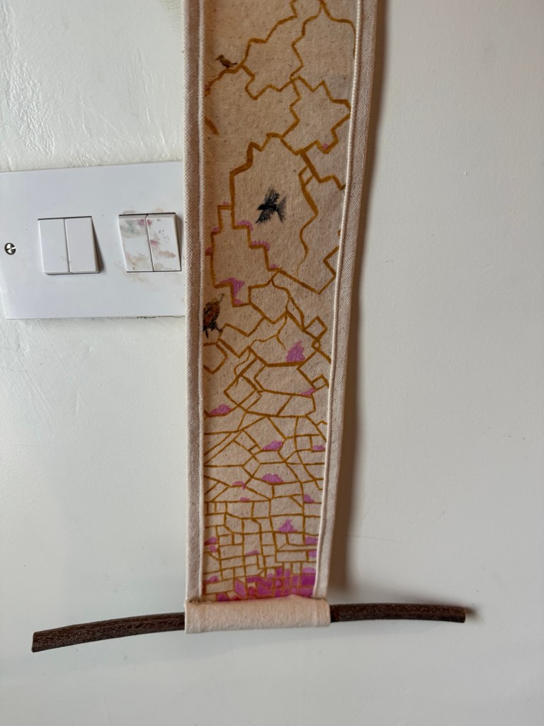 The scroll is now ready (sans pins in this photo) to show at ‘Modern Renaissance’ in London.