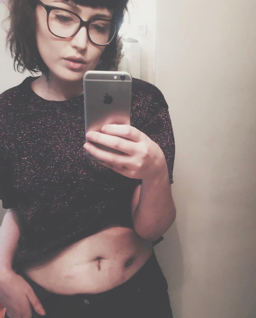 Visiting Tracey Emins exhibition on the low residency opened me up. I walked through the corridor of familiar images of stomas and wept. Thankfully it was dark. A small child next to me looked to her mum and went ‘this is disgusting’. Her mother tried to dampen the feeling by saying it was supposed to be shocking. All I wanted to do was turn to the girl and say ‘Yes… it is’. A very odd part of having a stoma is everyone around you policing how you feel about it. If anyone knows that it can be disgusting, its the very person who had it. The little girl was right. But having the stoma slap bang in the middle of the body positivity movement was a struggle. People were afriad to join me in singing the song of disgust, because they mistook what was a medical thing I needed to come to terms with, for my ACTUAL body, for curves and stretch marks and natural things that had been turned into something ‘not allowed’. Yes, it was part of my body, but it was the part that’s supposed to be disgusting. And that’s where I found acceptance. I didn’t always see it that way, but being ALLOWED to made the entire thing comfortable.
